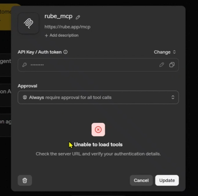 Open the MCP server you’re using. In my case, it was my rube MCP server.